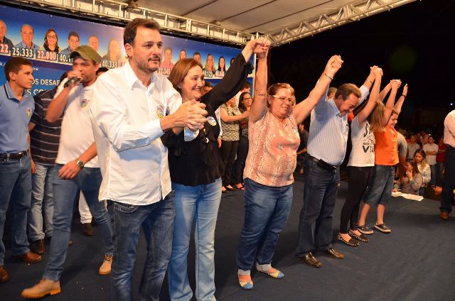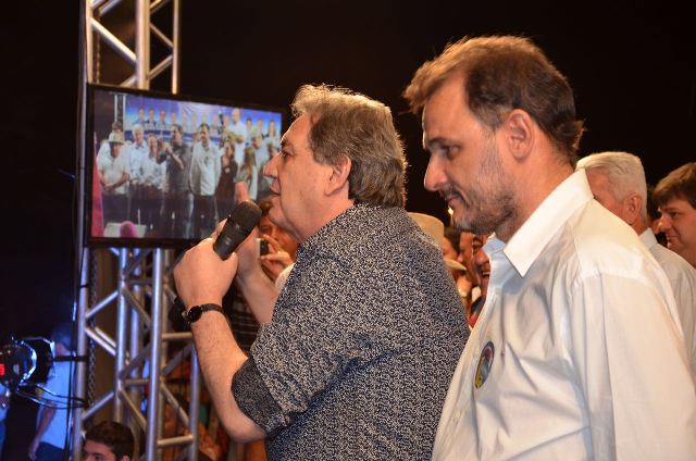 O estrelato do PMDB compareceu no palanque do candidato à reeleição Waldeli no primeiro comício