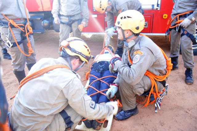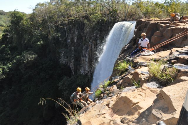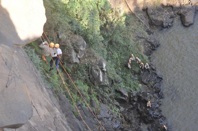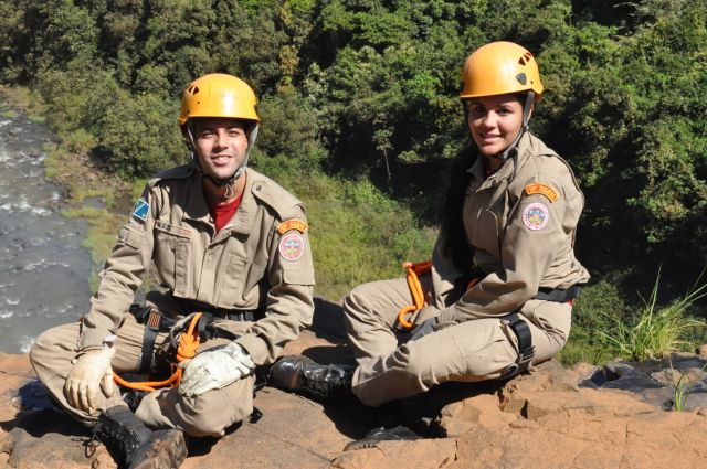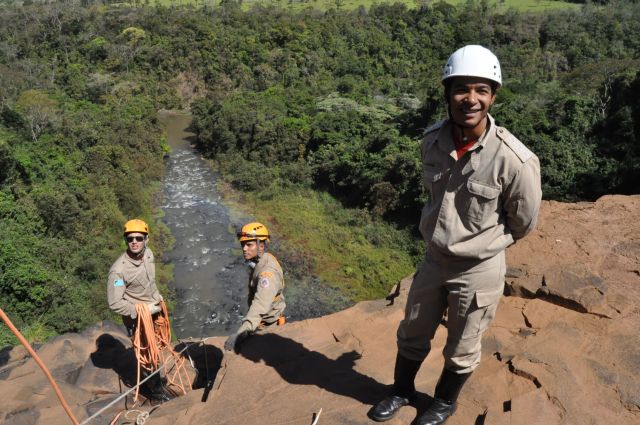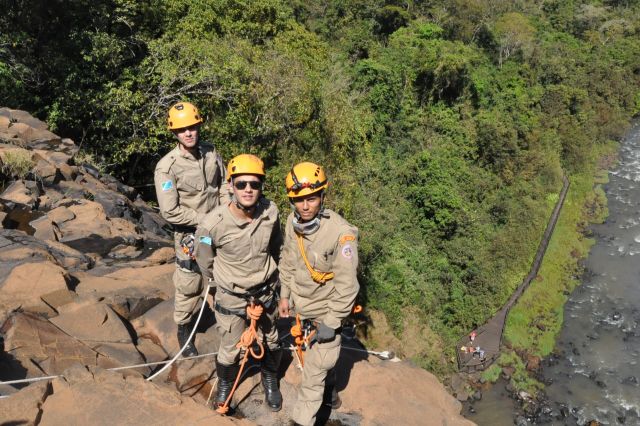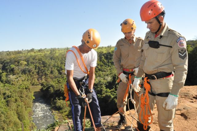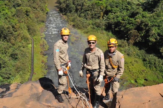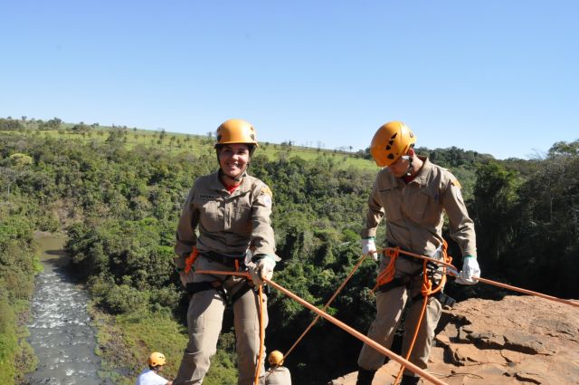 Os militares do Corpo de Bombeiros realizaram treinamentos com o uso de rapel nas cachoeiras do rio