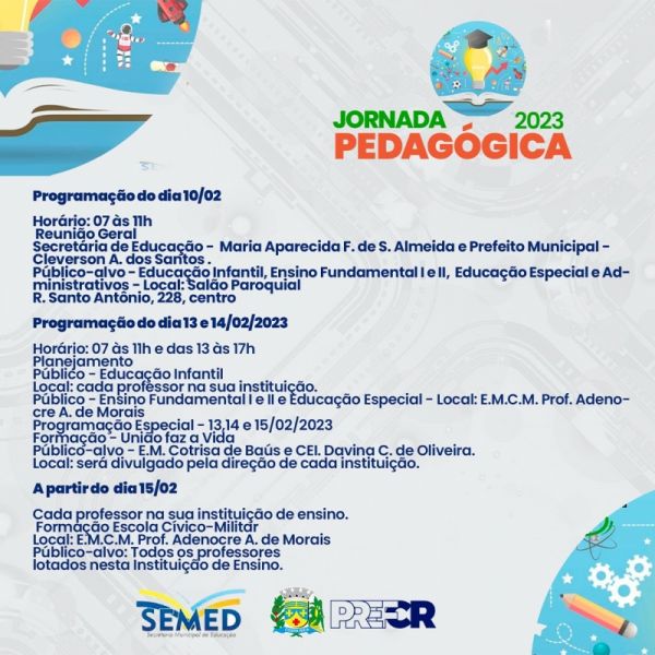 Aulas da Rede Municipal de Ensino iniciam dia 23 de fevereiro
