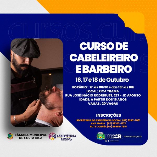 Curso de Cabeleireiro e Barbeiro estão com inscrições abertas em Costa Rica