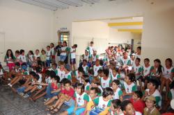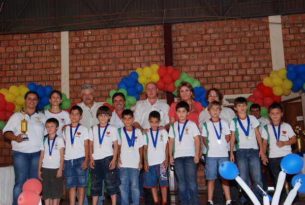 Alunos que participaram dos jogos comemoram o sucesso da competição