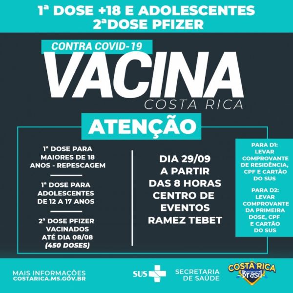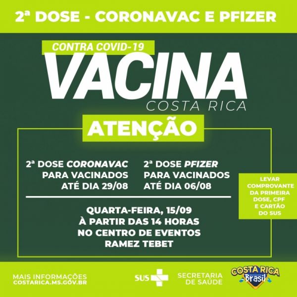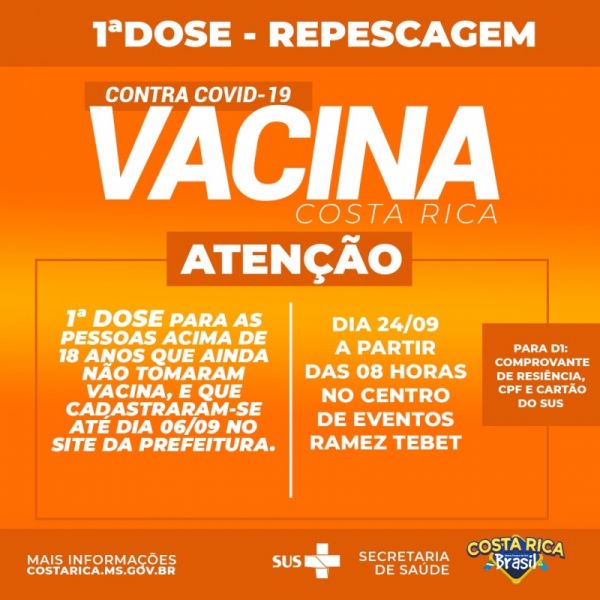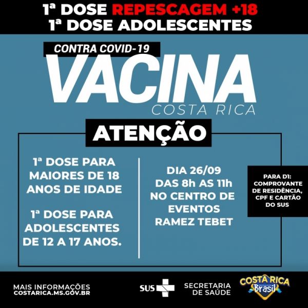Costa Rica faz repescagem da 1ª dose nesta sexta para cadastrados pelo site da Prefeitura