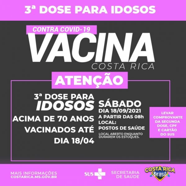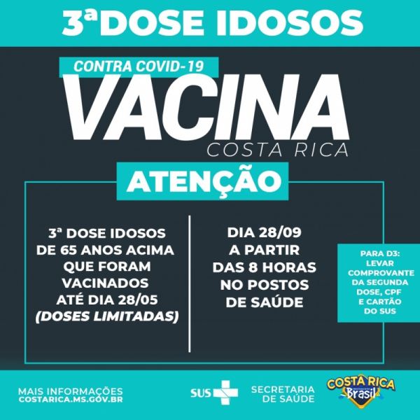 Vacinados até 28 de maio, com mais de 65 anos, tomam 3ª dose nesta terça-feira