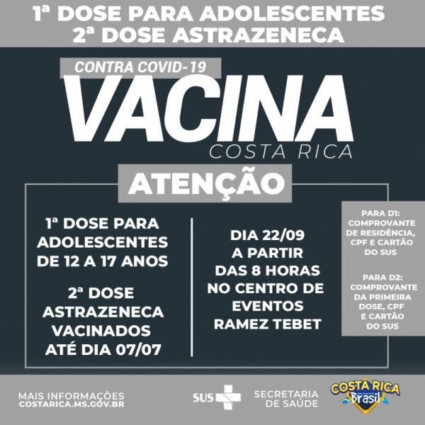 Costa Rica aplica 2ª dose de Astrazeneca e 1ª dose para adolescentes nesta quarta