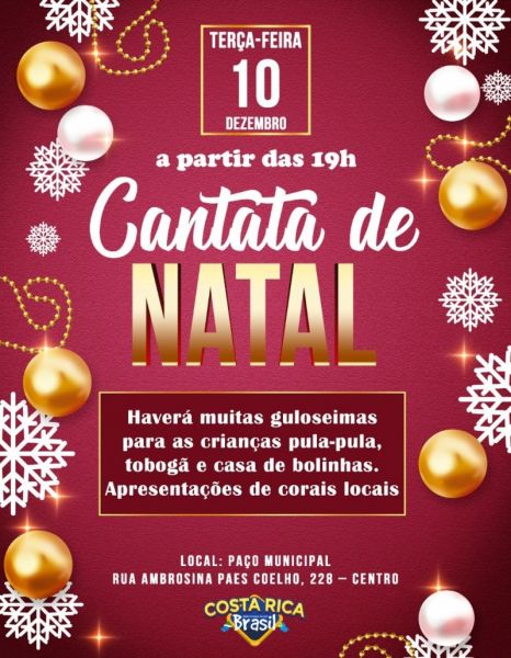 Tradicional Cantata de Natal, Acender das Luzes e chegada do Papai Noel abrem dia 10 de dezembro a programação natalina em Costa Rica