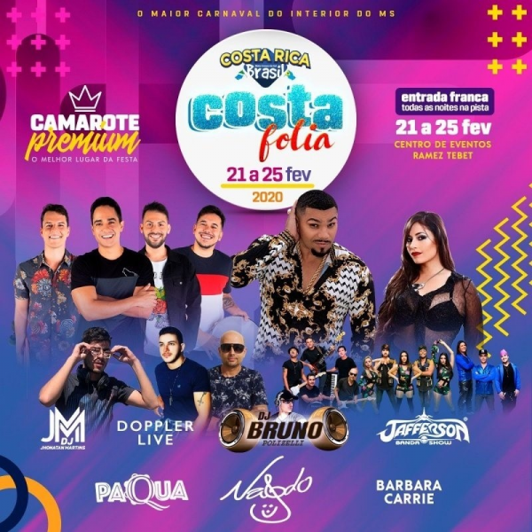 Com Naldo Benny, Paqua, Barbara Carrie, banda Jafferson e DJs Bruno Polizelli, Jhonathan Martins e Doppler Live acontece de 21 a 25 de fevereiro o Costa Folia 2020
