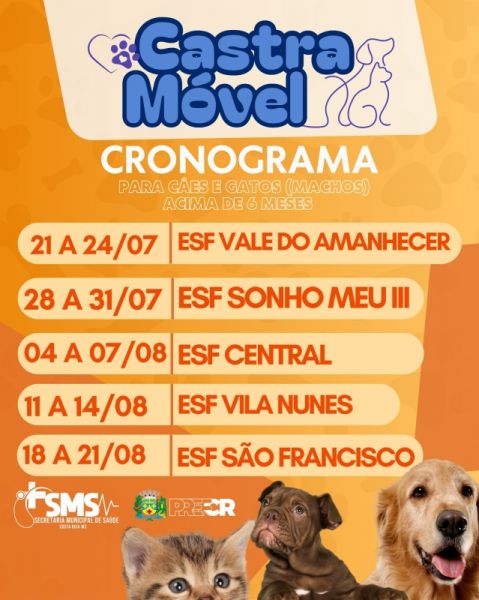 Castramóvel reforça cuidados com os pets em Costa Rica com novo cronograma para julho e agosto