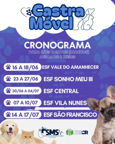 Cronograma de atendimentos do Castramóvel para o mês de junho