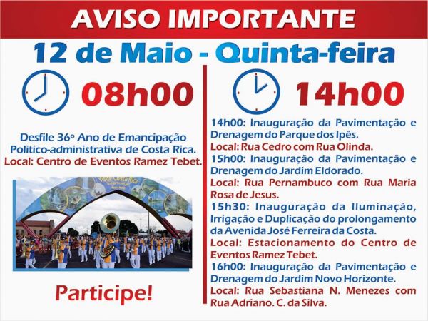- 05Prefeitura de Costa Rica prorroga validade de processo seletivo da Educação