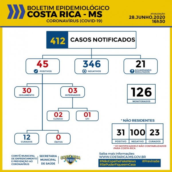 Covid-19: Costa Rica tem 45 casos confirmados neste sábado (27)