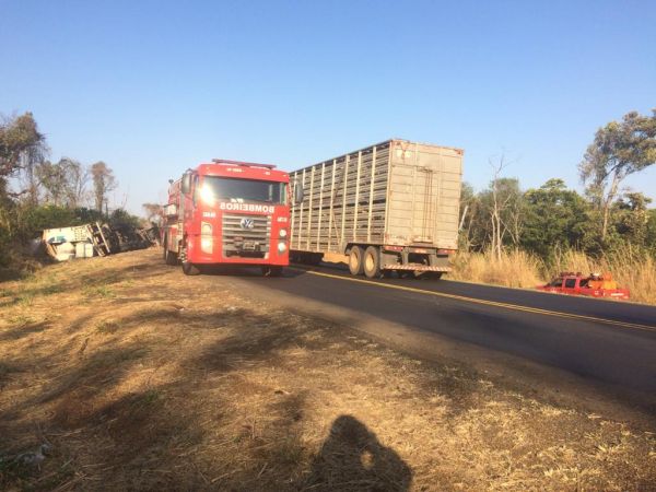Carga pega fogo na rodovia MS-306 após caminhão tombar