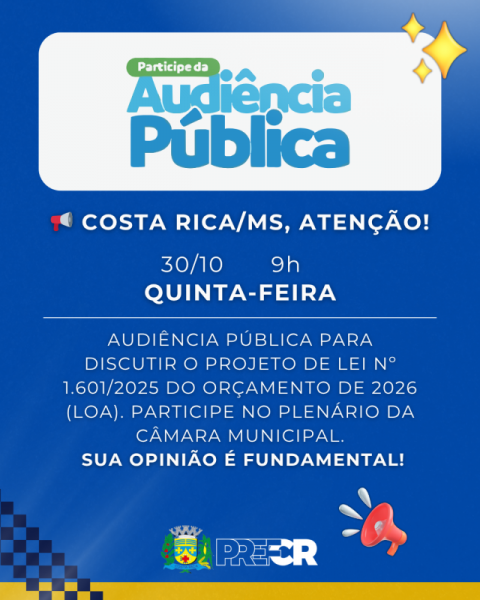 Costa Rica/MS realiza Audiência Pública sobre a LOA 2026