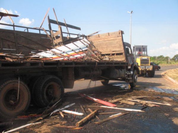 Caminhão boiadeiro carregado com 17 bois tomba