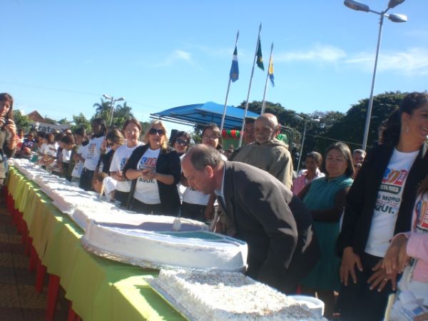 À cidade comemora aniversário de 30 anos com bolo em praça pública