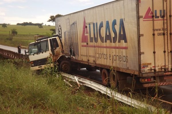 Buracos na pista levaram caminhão a bater em ponte na rodovia MS 306