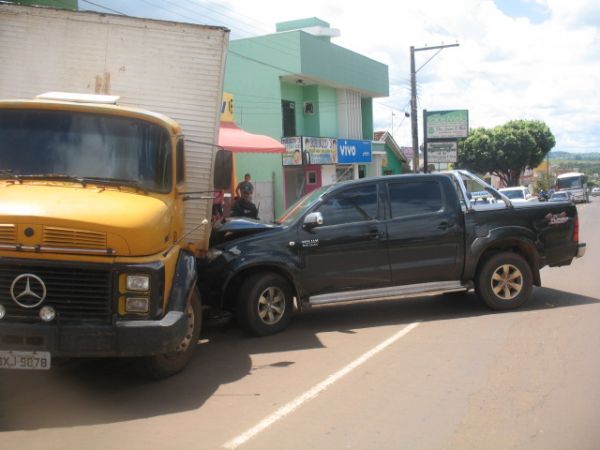 Caminhão desgovernado bate em caminhonete e interrompe o trânsito